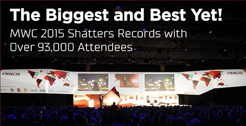 El Mobile World Congress ha recibido este años a 93.000 visitantes, de cerca de 200 países, el 9,4% más que en 2014, según los datos facilitados por la organización. Se preveía superar los 90.000 asistentes, lo que ya suponía un récord frente a los 85.000 profesionales que pasaron por el recinto Gran Via de Fira de Barcelona en la edición de 2014.