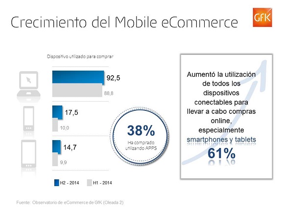 En los últimos seis meses de 2014 se ha producido un importante aumento de la utilización de todos los dispositivos conectables para realizar compras online. Especialmente en usuarios de smartphones y tablets, quienes de manera conjunta, han crecido un 61%.