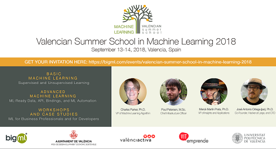 El equipo de BigML ya tiene todo listo para la próxima Machine Learning School en València, la ciudad de la innovación y la tecnología en España. Este año, BigML y València Activa a través VIT Emprende traemos la cuarta edición de esta Escuela de Aprendizaje Automático a La Nau, el centro cultural de la Universidad de València, del 13 al 14 de septiembre.