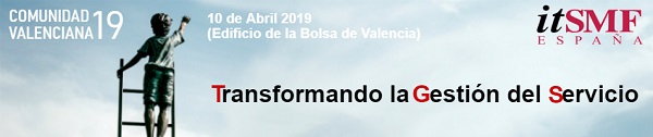 itSMF junto con el COIICV (Colegio Oficial de Ingeniería Informática de la Comunidad Valenciana), organizan la novena Jornada sobre Gestión y Gobierno TI del Comité de la Comunidad Valenciana de itSMF, bajo el lema "Transformando la Gestión del Servicio" y que se celebrará el 10 de Abril dentro del ámbito de la Semana Informática 2019.