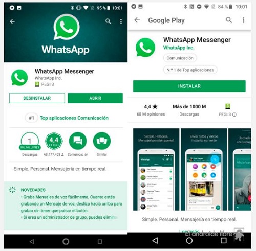 Colocando cara a cara las capturas de una Google Play actualizada y sin actualizar se aprecian perfectamente las diferencias en las fichas de las aplicaciones. La cabecera deja todo el ancho para las opciones primordiales. También se optimiza la zona de escritura de opiniones y se añaden algunas pinceladas en las búsquedas de apps. Más allá de aquí la Google Play de momento sigue igual, seguramente mientras se asientan los primeros cambios.