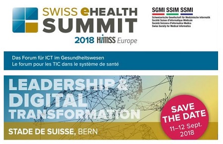 The Swiss eHealth Summit 2018 will take place at the Stade de Suisse in Berne from 11 to 12 September 2018 and will put emphasis on „Leadership & Digital Transformation”.