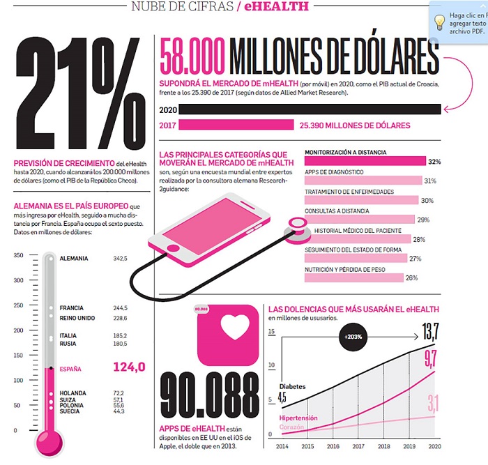 Clarificadora infografía de las cifras de la eHealth o eSalud por Carlos Gómez Abajo de El País Retina.