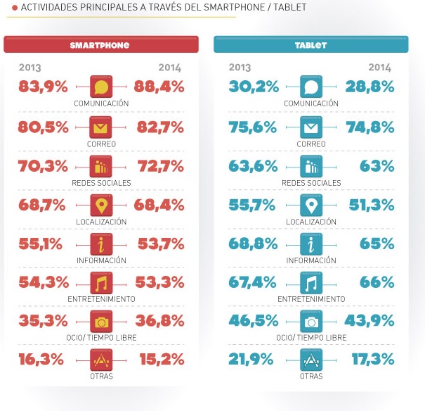También encontramos que nuestro país, a pesar de ser el primero en Europa en cuanto a penetración de smartphones (alrededor de 23 millones de personas), este último año ha bajado sus cifras en descargas de aplicaciones a 3,8 millones de descargas diarias. Esta bajada puede ser provocada a que el mercado español esté pasando por la fase de maduración de producto y los usuarios se hayan hecho más selectivos a la hora de elegir que aplicaciones descargarse o no. Ahora los desarrolladores lo tendrán más complicado a la hora de convencer al usuario de que su aplicación merece la pena ser descargada, pero una vez lo consigan tienen también mayor posibilidad de permanecer el máximo tiempo posible en sus dispositivos.