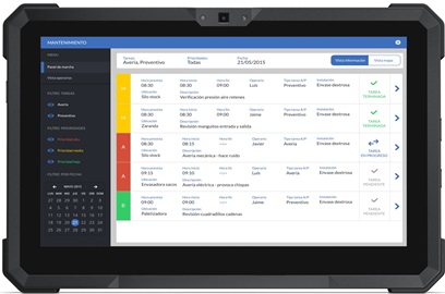 - Calendario: el plan de mantenimiento se carga en dispositivos de los operarios de manera transparente desde el sistema de gestión.