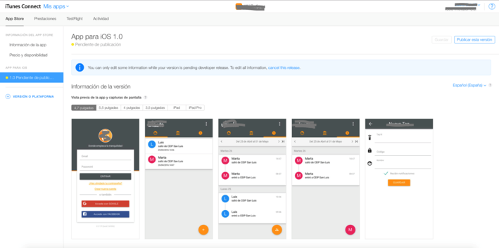 En este punto no se puede realizar ningún cambio en los metadatos (como por ejemplo las capturas de pantalla y los Keywords) hasta después de que la aplicación es aprobada.