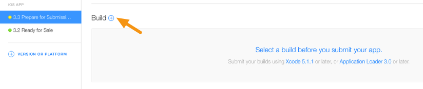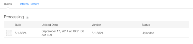 Si no hay ninguna compilación subida, verás el mensaje "Envía tus compilaciones con Xcode 6 o posterior, o con Application Loader 3.0 o posterior."