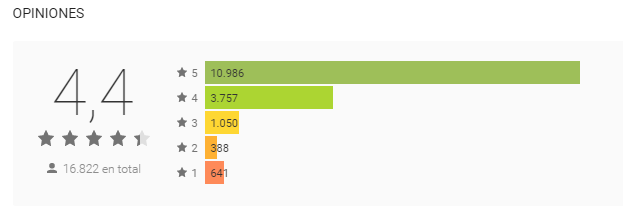 - Puntuación o Nota global de tu APP y opiniones de los usuarios. Si tu app obtiene buenas puntuaciones y comentarios Google te recompensará posicionándote de manera privilegiada.