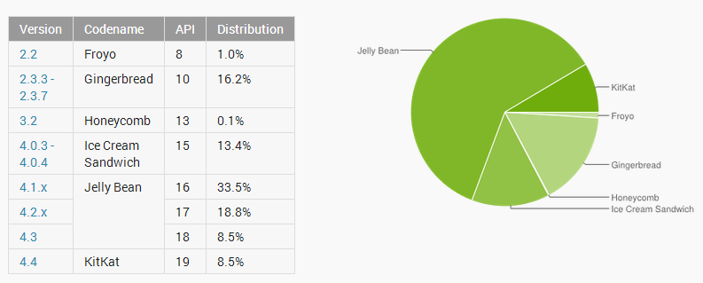 Es de vital importancia conocer el mercado, por el simple hecho de que podemos estar limitando nuestra audiencia a tan sólo un 8% del mercado total si limitamos nuestra app Android a arrancar sólo en KitKat o a un 88% en el caso de aplicaciones sólo para iOS7.
